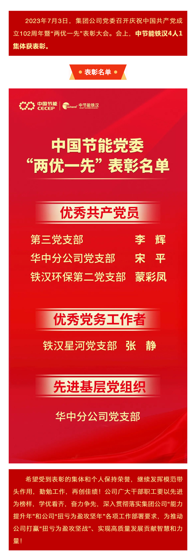 【喜報(bào)】“七一”表彰 | 中節(jié)能鐵漢4人1集體獲集團(tuán)公司黨委表彰