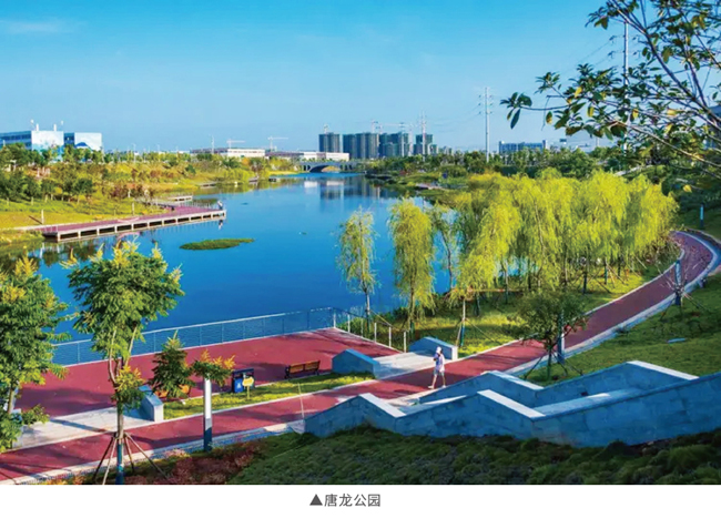 唐龍公園位于江西省贛州市城區(qū)內(nèi),秉持綠色環(huán)保的海綿城市建設(shè)理念,通過綠地種植、透水材料鋪設(shè)地面、雨水花園等設(shè)施,實(shí)現(xiàn)雨水的下滲、滯蓄、凈化、回用,有效提升城市排水系統(tǒng)標(biāo)準(zhǔn),緩解內(nèi)澇壓力,展現(xiàn)城市的都市美和自然美。