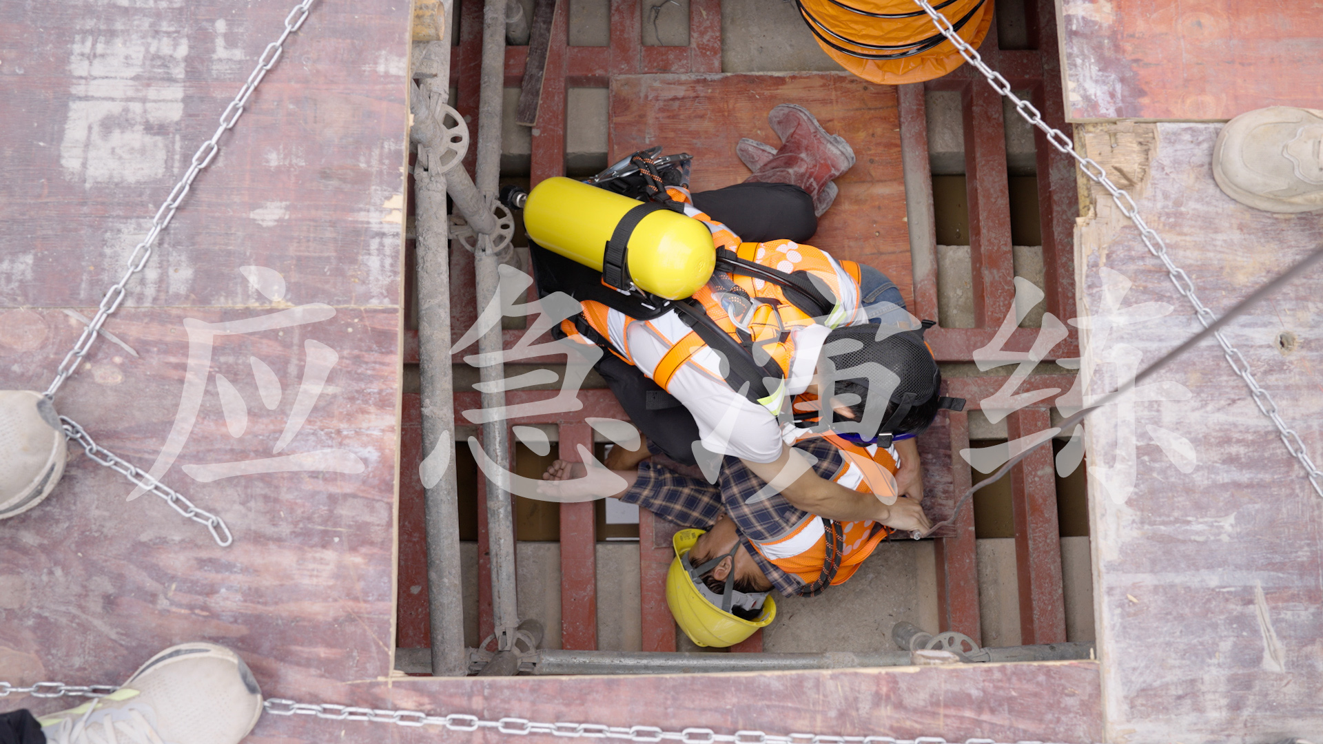 有限空間應(yīng)急演練環(huán)節(jié),模擬施工現(xiàn)場作業(yè)人員在消防水池內(nèi)發(fā)生氣體中毒窒息事故,現(xiàn)場管理人員立即報告給現(xiàn)場安全員,現(xiàn)場安全員到達現(xiàn)場后,發(fā)現(xiàn)中毒者無意識、無脈搏、無呼吸,立即上報項目經(jīng)理開展應(yīng)急救援,通過各小組的緊密協(xié)作,成功營救中毒窒息人員,使其脫離生命危險。