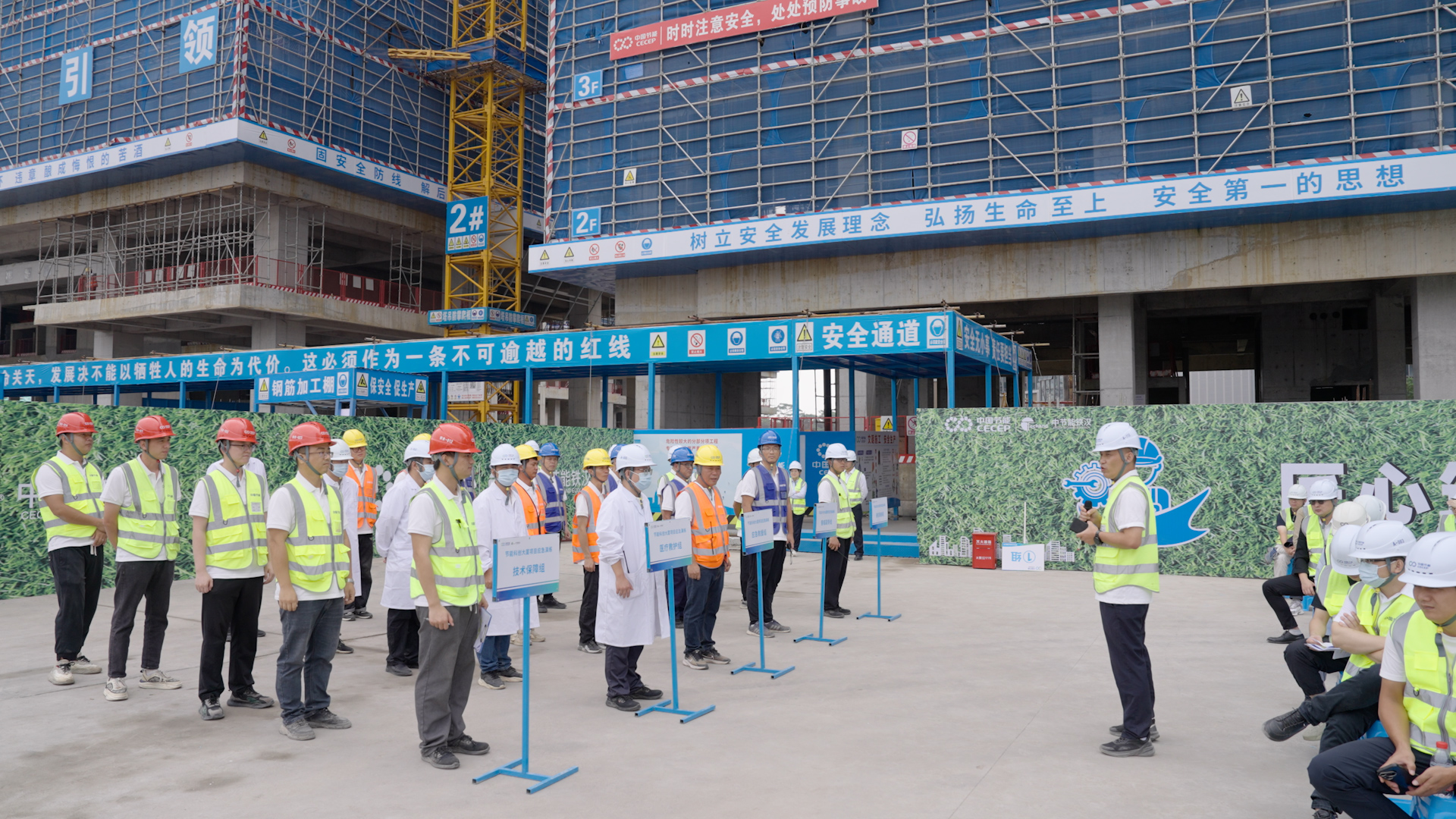 質(zhì)量安全觀摩環(huán)節(jié),參會人員集中參觀了項目質(zhì)量工藝樣板、實體樣板、安全體驗區(qū)、BIM展示區(qū)、安全質(zhì)量和勞務(wù)實名制管理的內(nèi)業(yè)資料,詳細了解了主體結(jié)構(gòu)施工、二次結(jié)構(gòu)砌筑、ALC墻板、機電安裝、幕墻安裝等關(guān)鍵工序的質(zhì)量控制要點和安全標(biāo)準(zhǔn)化的把控要點。項目管理團隊通力協(xié)作,對施工工藝流程和控制要點、安全文明施工標(biāo)準(zhǔn)化管理經(jīng)驗進行了現(xiàn)場講解,為各項目提供了可復(fù)制、可推廣的管理范本。