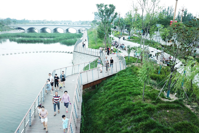在項(xiàng)目實(shí)施過程中,中節(jié)能鐵漢創(chuàng)新性提出水安全保障、水循環(huán)構(gòu)建、水生態(tài)修復(fù)、水文化整合、水景觀提升、水經(jīng)濟(jì)發(fā)展“六位一體”的系統(tǒng)性綠色設(shè)計理念,充分發(fā)揮長澗河河流廊道的生態(tài)系統(tǒng)服務(wù)功能,旨在構(gòu)建綠地分布合理、生態(tài)環(huán)境優(yōu)良、可持續(xù)發(fā)展的“山水環(huán)繞、河流貫城、湖面點(diǎn)綴”“山、河、湖、城”相融合的國家生態(tài)園林城市。