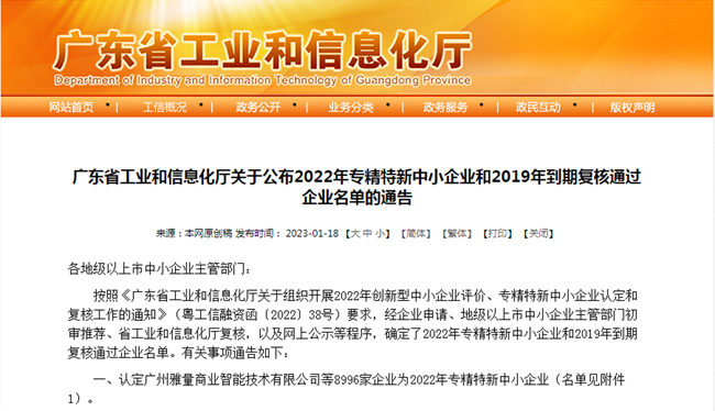 同時(shí),根據(jù)廣東省工業(yè)和信息化廳發(fā)布的《關(guān)于公布2022年專(zhuān)精特新中小企業(yè)和2019年到期復(fù)核通過(guò)企業(yè)名單的通知》,鐵漢環(huán)保被認(rèn)定為廣東省2022年度專(zhuān)精特新中小企業(yè),有效期自公布之日起三年。“專(zhuān)精特新”中小企業(yè)是指實(shí)現(xiàn)專(zhuān)業(yè)化、精細(xì)化、特色化發(fā)展、創(chuàng)新能力強(qiáng)、質(zhì)量效益好的優(yōu)質(zhì)企業(yè)。本次“專(zhuān)精特新”中小企業(yè)評(píng)選是廣東省工信廳基于從事特定細(xì)分市場(chǎng)年限、研發(fā)費(fèi)用總額、研發(fā)強(qiáng)度、營(yíng)業(yè)收入等基本條件,選拔出創(chuàng)新能力強(qiáng)、市場(chǎng)占有率高、質(zhì)量效益優(yōu)的排頭兵。
