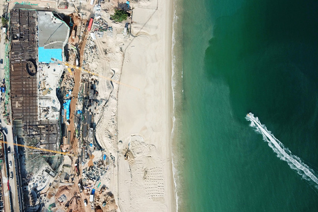 三月的小梅沙灣畔,一派繁忙的建設(shè)景象。